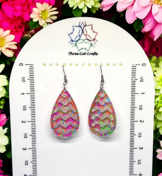 Teardrop Earrings with Chevron Cut – Colorful Statement Jewelry Description:
