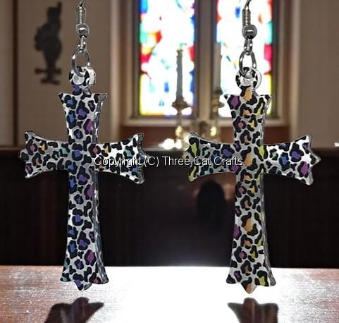 Clear Acrylic Cross Earrings – Multi-Colored Leopard Print