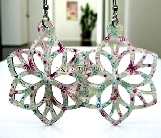 Clear Acrylic Teardrop Earrings with Delicate Floral Pattern