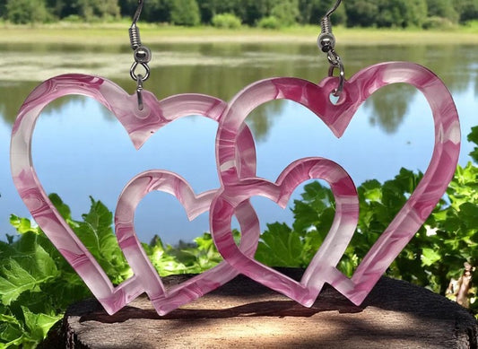 Pink, White & Clear Heart Earrings – Lightweight Acrylic Love-Inspired Dangles