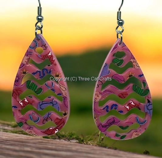 Pink Teardrop Earrings with Chevron Cutout – Cowgirl Western Vibes