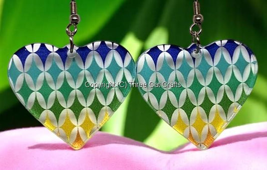 Heart Earrings – Rainbow Diamond Pattern on Clear Acrylic